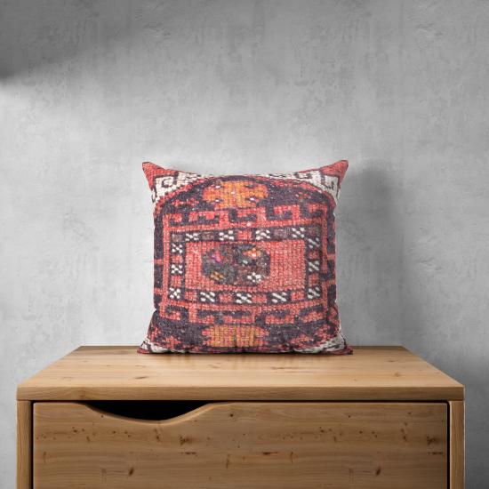 Kırlent Boyutu: 40cm x 40cm Sadece kırlent kılıfı gönderilmektedir. Kuru temizleme önerilir. Ürünün ön yüzü türüne göre; el dokuması yün, pamuk veya halı, arka yüzü fermuarlı pamuk kumaştır. Ürünlerimizde kullanılan kilimlerin en yenisi 50 sene önce dokunmuştur.Kilim; yüzyıllar boyunca Anadolu’ da dokunarak günümüze dek ulaşan ve yozlaşmayan bir kültür haline gelmiştir. 1970’ lerin sonuna kadar kırsalda yaşayan ailelerin her birinin evinde halı ve kilim tezgahları bulunurken 1980’ lerin başından itibaren el dokuması kilim kırlentlerin yerini, polyester iplikler kullanılarak makinede dokunan kumaşlar almıştır. Makineleşmenin artmasıyla son 20 yıldır bu kültür, ne yazık ki unutulmaya yüz tutmuştur. Büyük çoğunluğu Anadolu’ nun farklı yörelerinden toplanan bu eski ve özel motifli el dokuması kilimleri yıkadıktan sonra sağlam olan kısımlarını yastık ve kırlent yüzü veya döşeme olarak kullanıyoruz. Böylece hem kültürel mirasımıza sahip çıkıyor, hem de geri dönüşüme katkı sağlıyoruz. Ürünlerimizde sadece Anadolu’ da değil, Orta Asya bölgesinde ve Batı Trakya’ da dokunmuş kilimler de kullanılmaktadır. Özbekistan, Afganistan, İran, Türkmenistan, Bulgaristan ve Romanya ürünlerimizde kullandığımız kilimlerin dokunduğu yerlere örnek olarak verilebilir. Bazı kilimler pamuk üzerine yün, bazı el dokuması kilimler yün üzerine yün, bazıları ise pamuk üzerine pamuk ipler kullanılarak dokunup kullanıma hazır hale gelmiştir. Günümüzde artık tezgahlarda kilim dokunmamaktadır. Kültürün kaybolmaması için bazı sivil toplum kuruluşları, belediyeler ve özel müzeler haricinde elde kilim dokuması yapılmamaktadır. Kilimlerin üzerindeki model ve motiflerin her biri; dokumayı yapan kişinin ruh halini ve dönemin sosyokültürel yapısını yansıtmaktadır. İpler; koyun yünü, keçi kılı ve pamuğun eğrilmesi ile üretilmiştir. İplerin boyanması için 1950’ den önceki yıllarda kök boya kullanılırken 1950 ve sonrasında, 1970’ lere kadar ot boyaları; daha sonraki dönemlerde ise yarı kimyasal boyalar kullanılmıştır. Tamamı el emeği göz nuru kilimler; genelde duvar süsü veya yer sergisi olarak kullanılmak üzere dokunmuş ve daha sonrasında yine el işçiliğiyle kırlent haline getirilmiştir. Ürünlerimizde kullanılan kilimlerin tamamı; 1940-1960 yılları arasında bitkisel boyalar ve hayvansal iplikler kullanılarak elde dokunmuş, dönemine ait kilimlerdir.